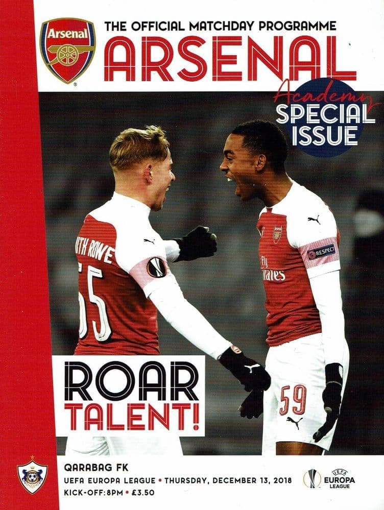 Arsenal v Qarabag UEFA Europa League Match Programme 2018/2019 - 13th December 2018