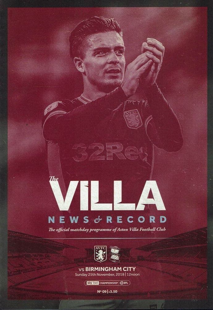 Aston Villa v Birmingham Official Matchday Programme 2018/2019 - 25th November 2018
